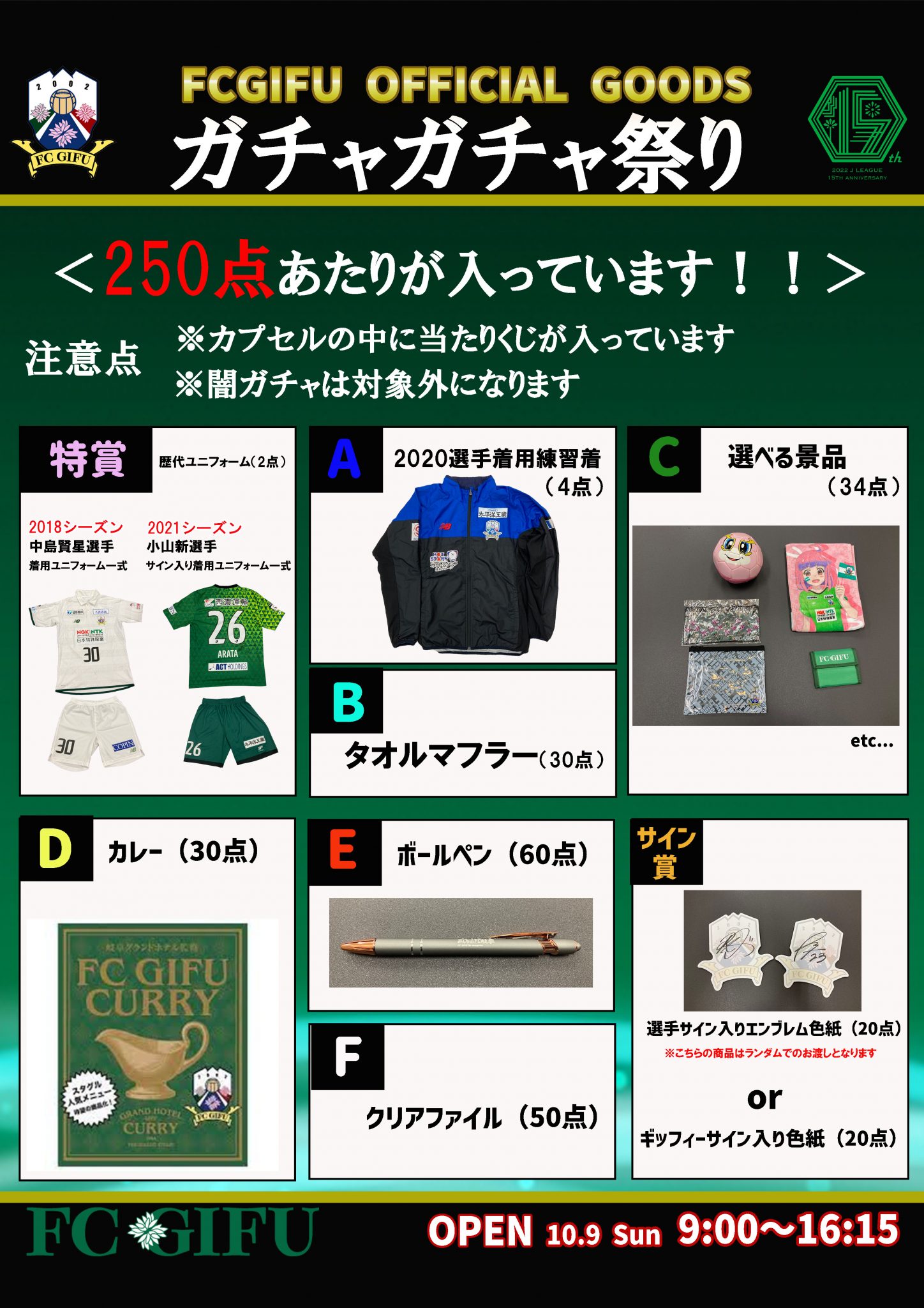 この試合グッズショップのオープン時間は「キックオフの4時間前」ガチャガチャは「キックオフの5時間前」になります。