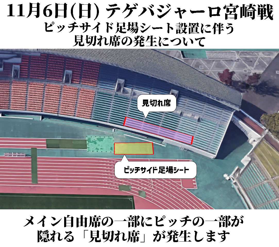 先行入場/11:30~ 【ホームチーム横断幕設置時間】 10:30~11:00 14:03キックオフ ピッチサイドシートの設置に伴い、ピッチの一部が隠れる「見切れ席」がメインスタンドの一部に発生いたします。