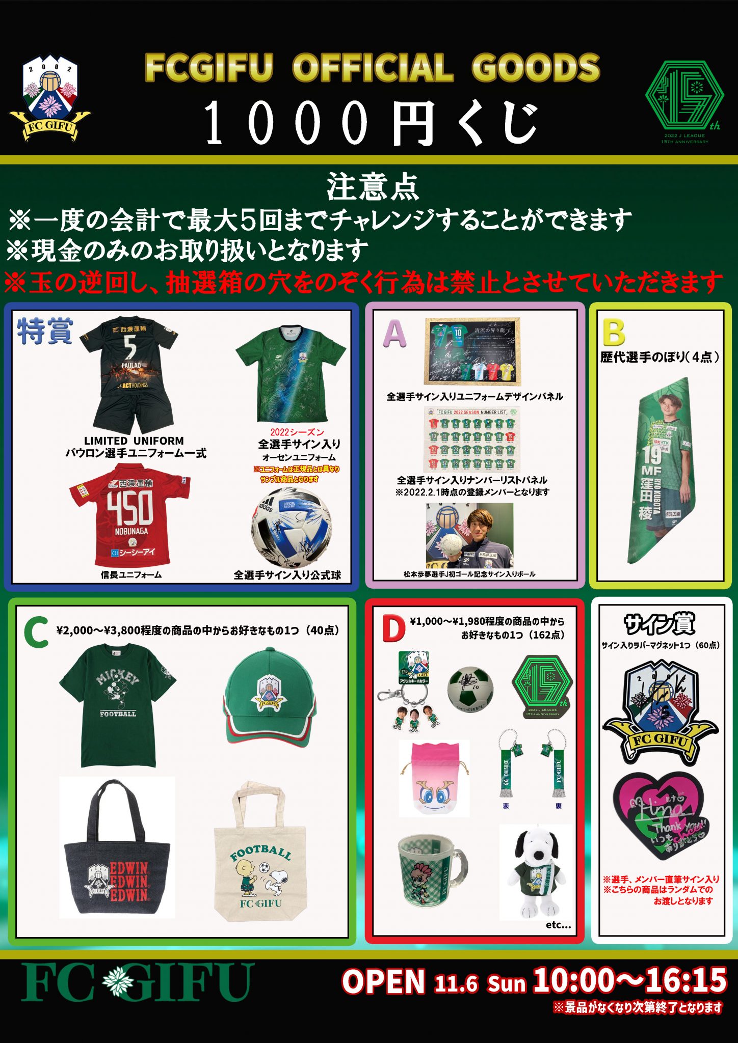 グッズショップ営業時間/10:00~試合終了後15分程度