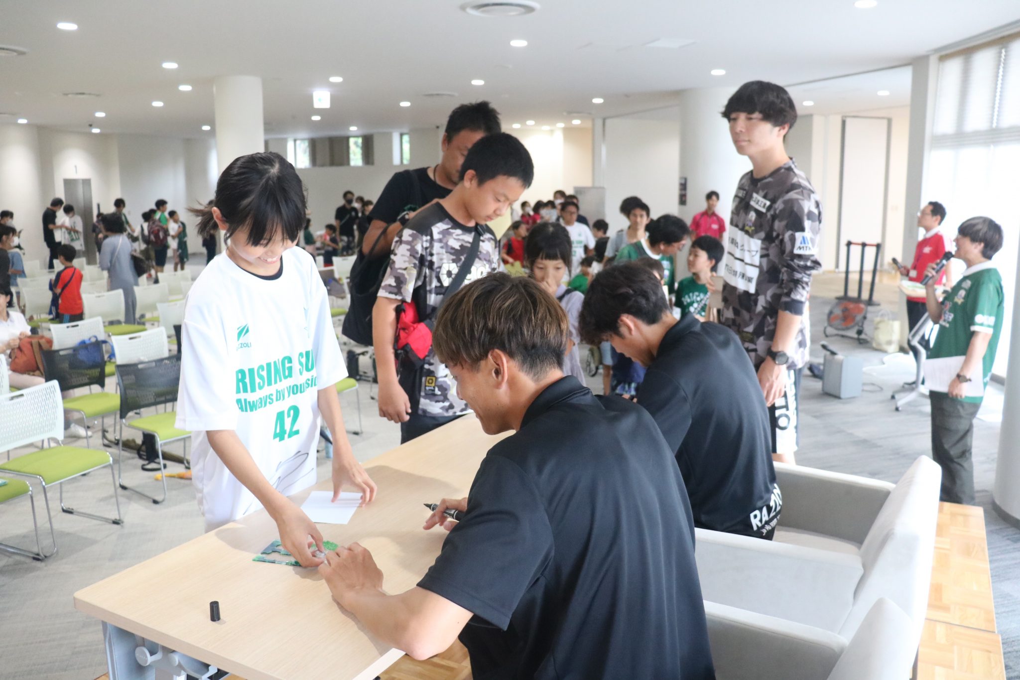 本日、バロー人材開発センター嫩葉舎(どんようしゃ)にて、「親子サッカーフェスタ」を開催いたしました。選手のトークショーやキックターゲットなどのサッカーアトラクションなど、イベントの様子が放送されます。