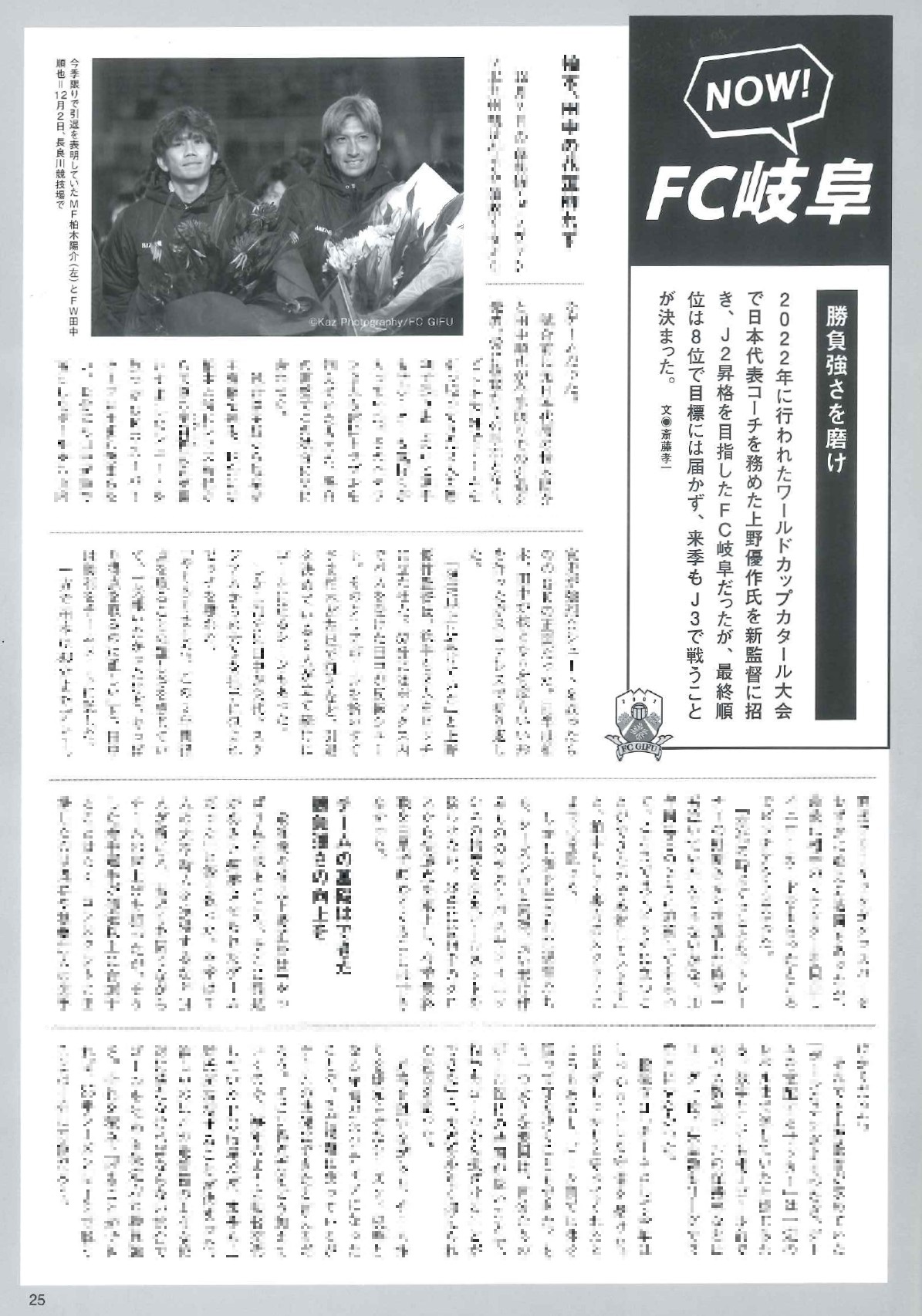 「月刊グラン1月号」『NOW!FC岐阜』にFC岐阜の記事掲載