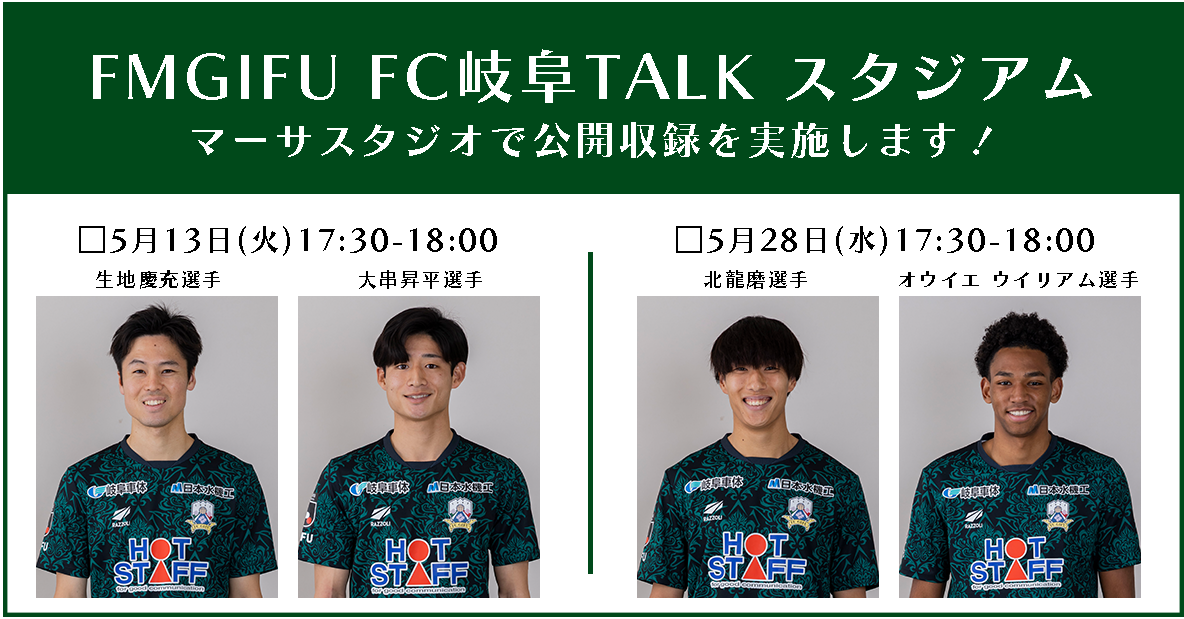 5/13(火)・28(水)FM GIFU「FC岐阜 TALKスタジアム」 マーサスタジオにて公開収録