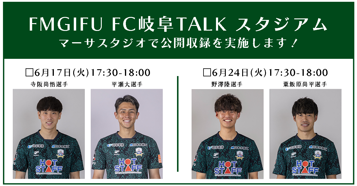 6/17(火)・24(火)FM GIFU「FC岐阜 TALKスタジアム」 マーサスタジオにて公開収録