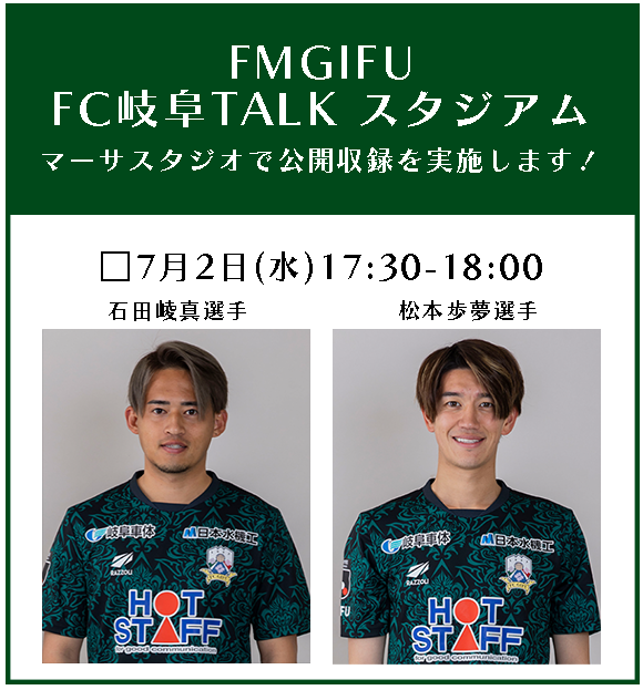7/2(水)FM GIFU「FC岐阜 TALKスタジアム」 マーサスタジオにて公開収録