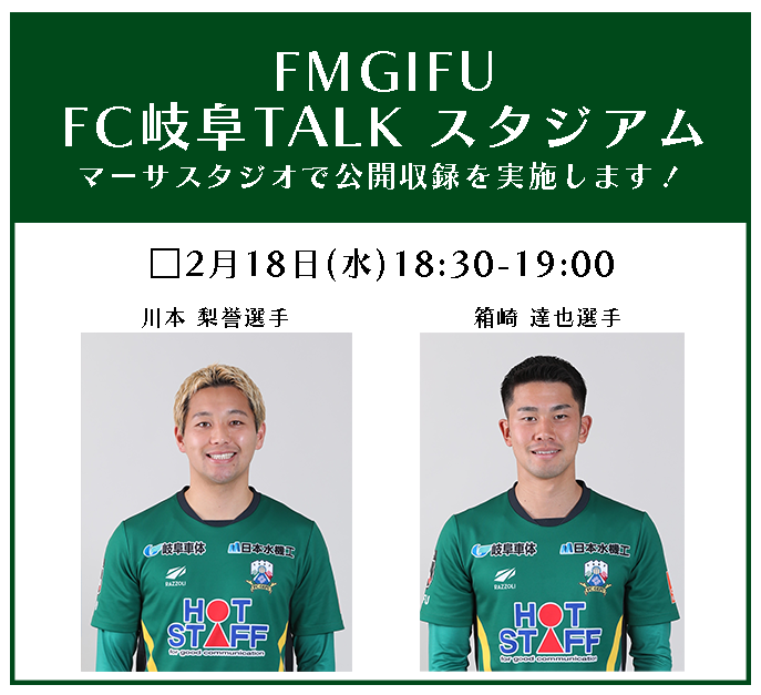 【2/10追記】2月 FM GIFU「FC岐阜 TALKスタジアム」 マーサスタジオにて公開収録