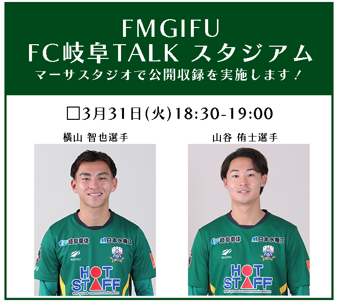 【3/24(火)追記】3月 FM GIFU「FC岐阜 TALKスタジアム」 マーサスタジオにて公開収録