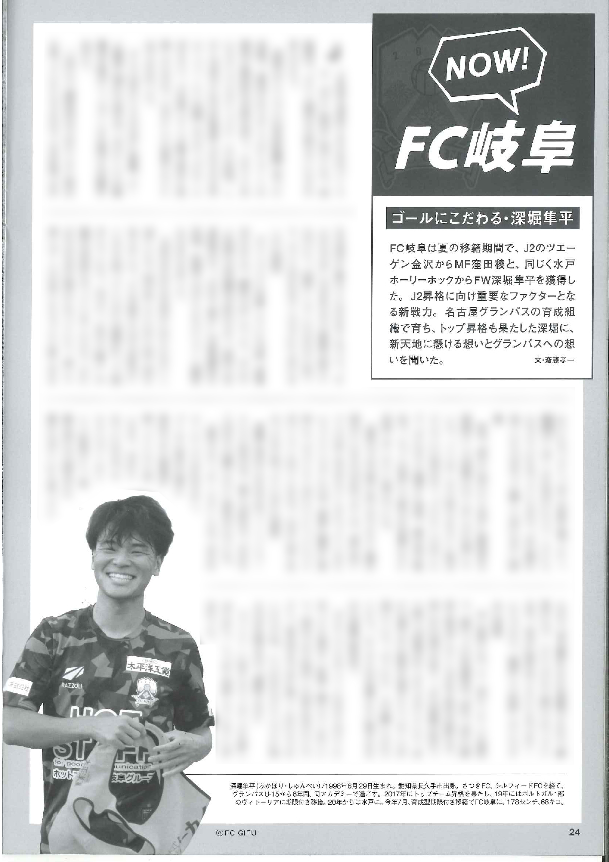 「月刊グラン10月号」『NOW!FC岐阜』に深堀隼平選手の記事掲載