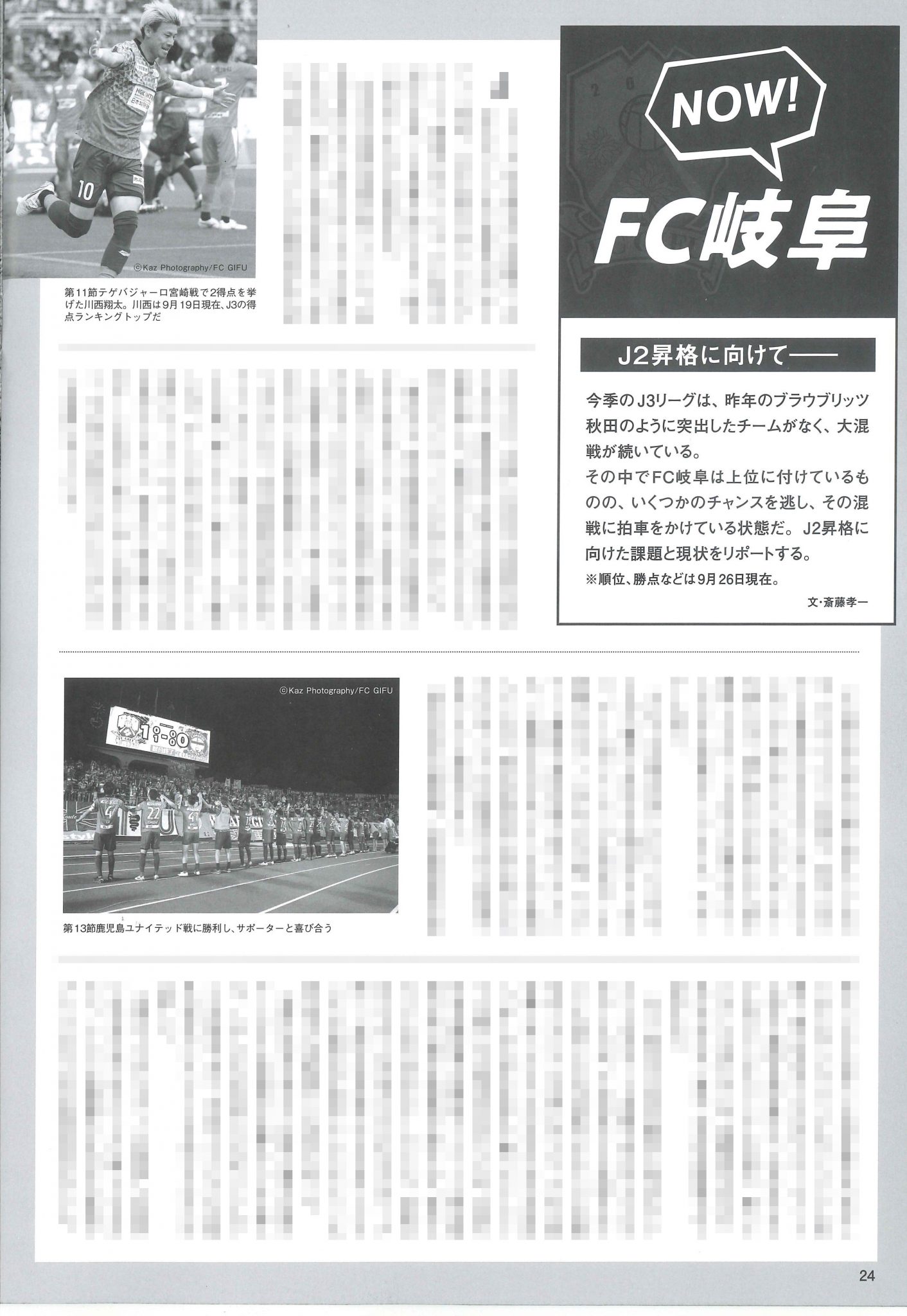 中日新聞社が出版している「月刊グラン」11月号の『NOW!FC岐阜』コーナーにて、「J2昇格に向けて」の記事が掲載されています。