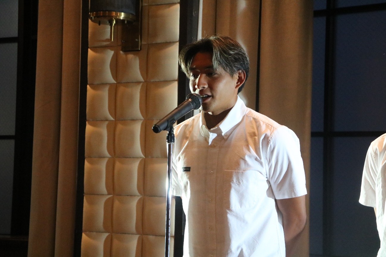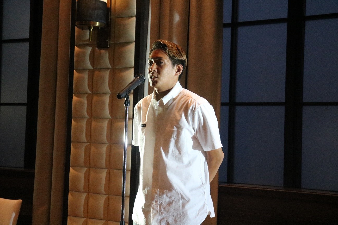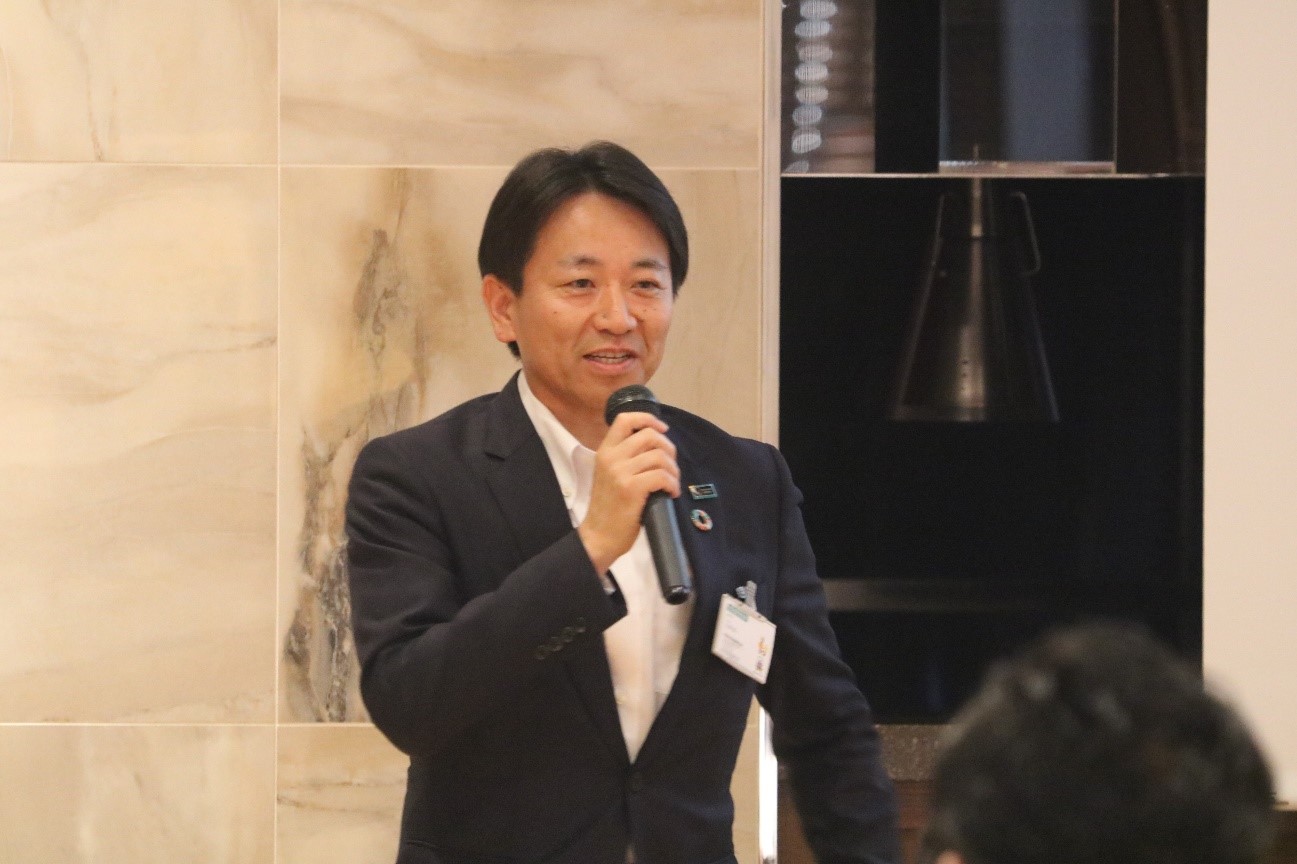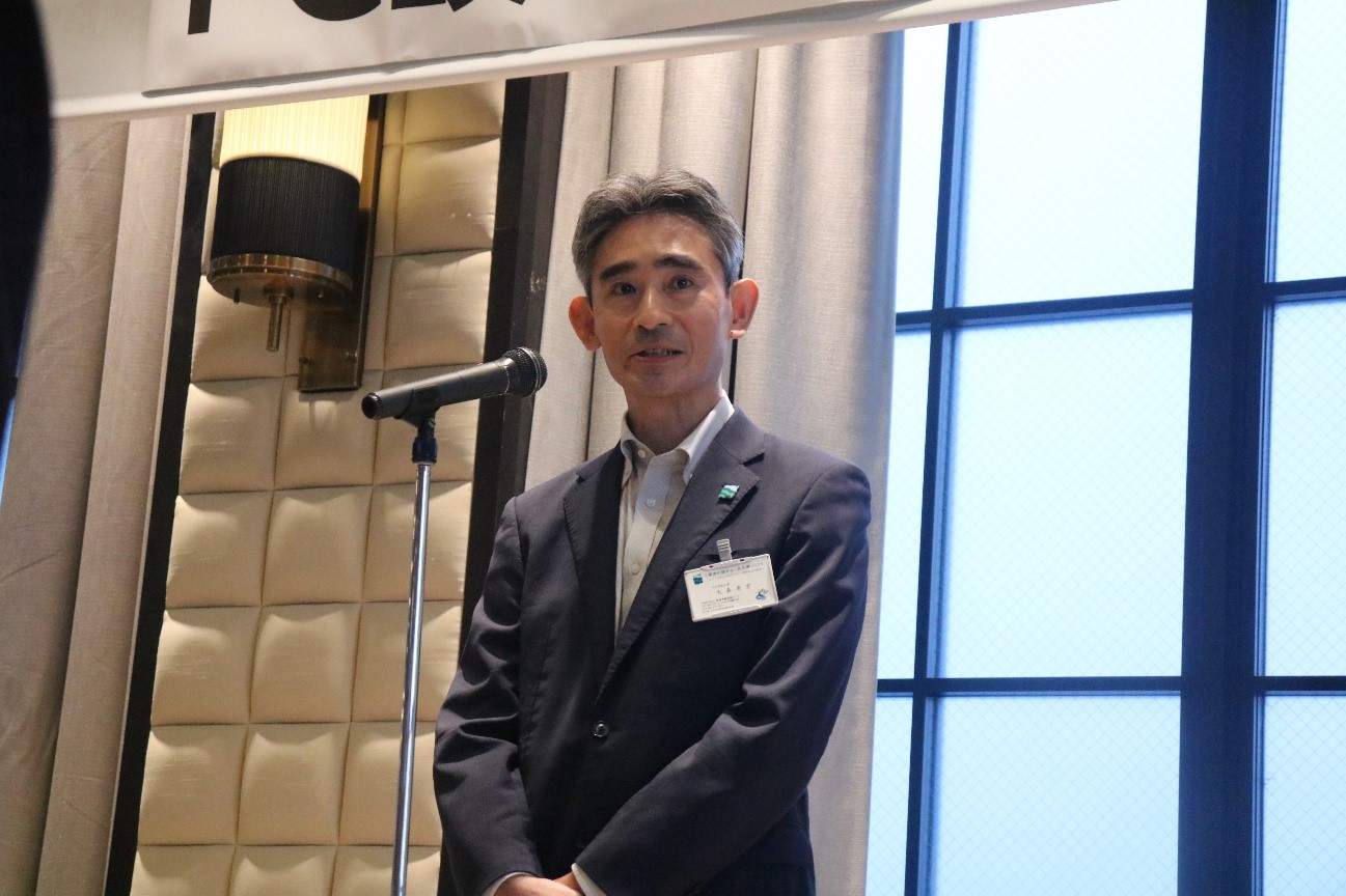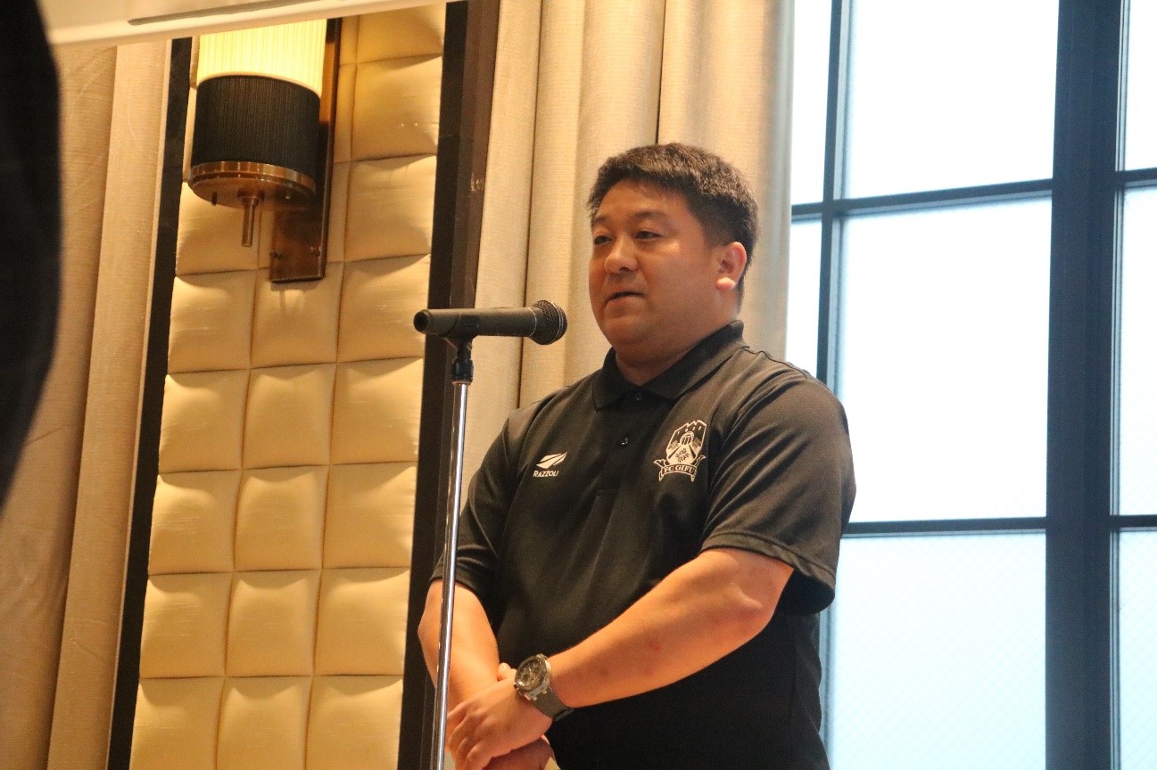 2部では、立食形式で交流会を行い、はじめに株式会社岐阜フットボールクラブ 代表取締役社長 小松 裕志より日頃からの感謝・御礼を申し上げました。