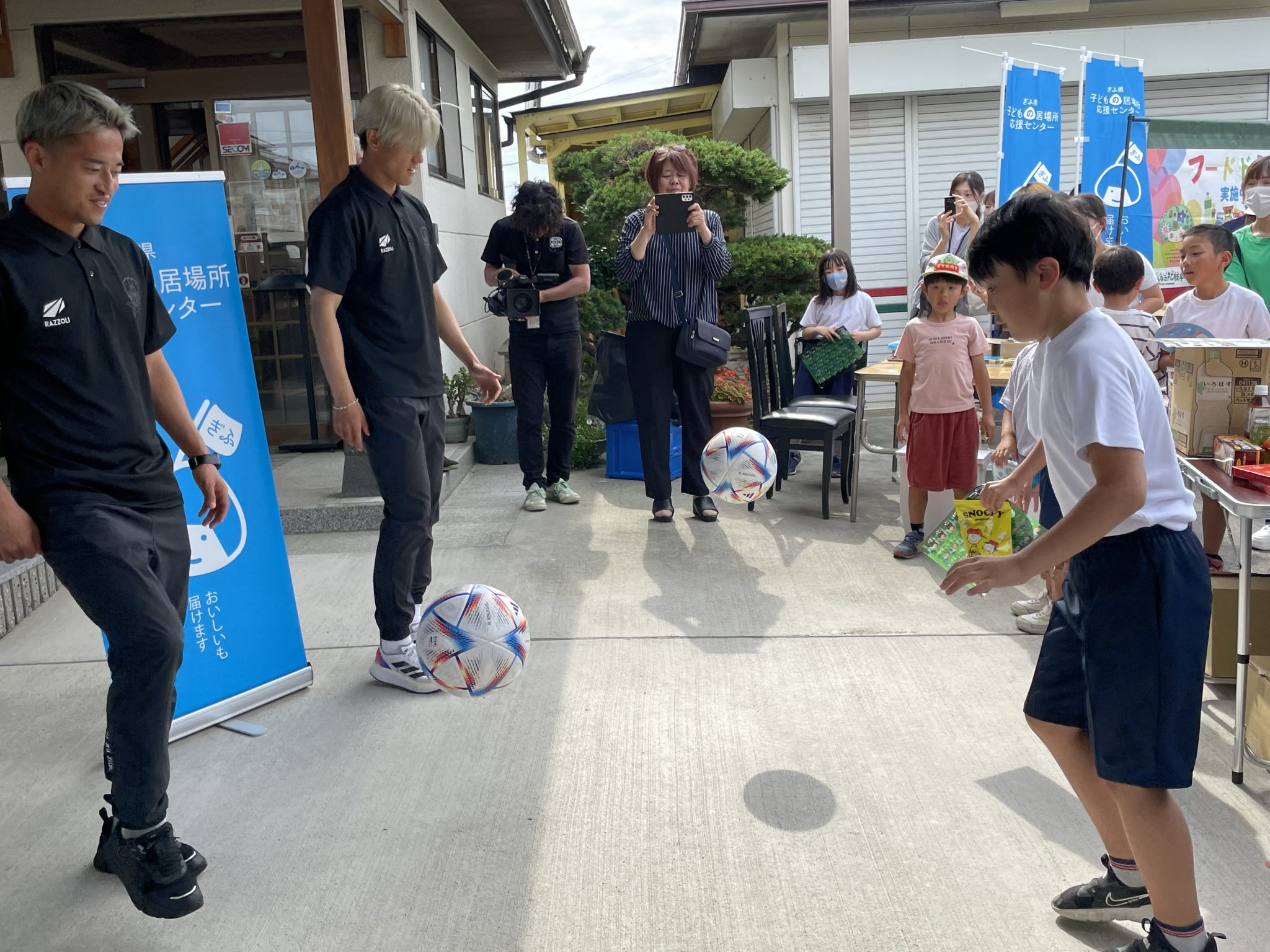 5月30日(木)瑞穂市ホームタウン応援大使を務める藤岡浩介選手と石田崚真選手が瑞穂市にある子どもの居場所「ちょっとよってみ 美寿穂(みずほ)」へ 毎ホームゲームで集めている食品をお届けしました。