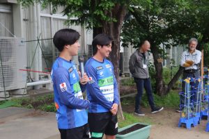 当日は、トップチーム選手も参加し、児童と一緒にアサガオの種まきを行い交流しました。