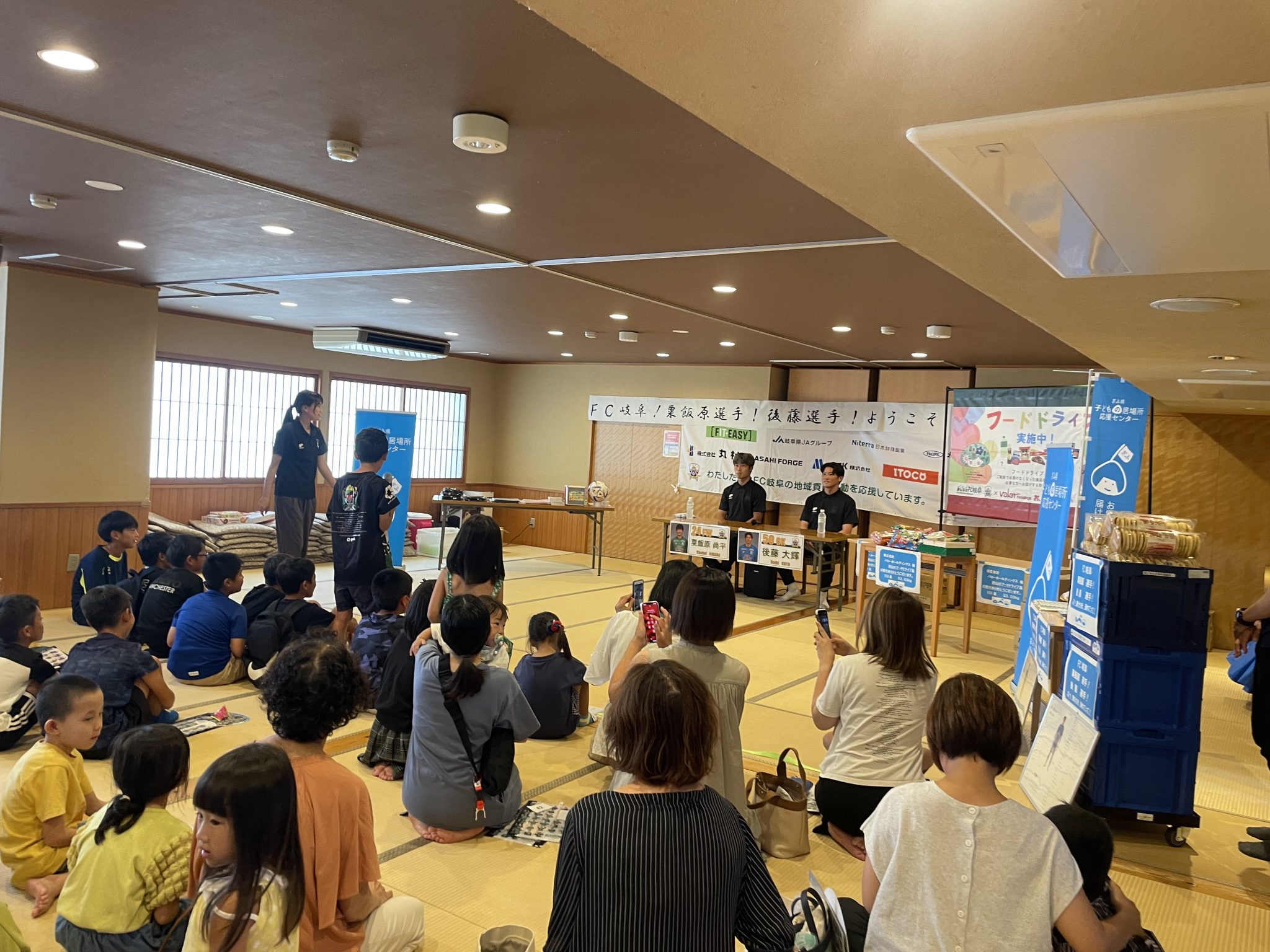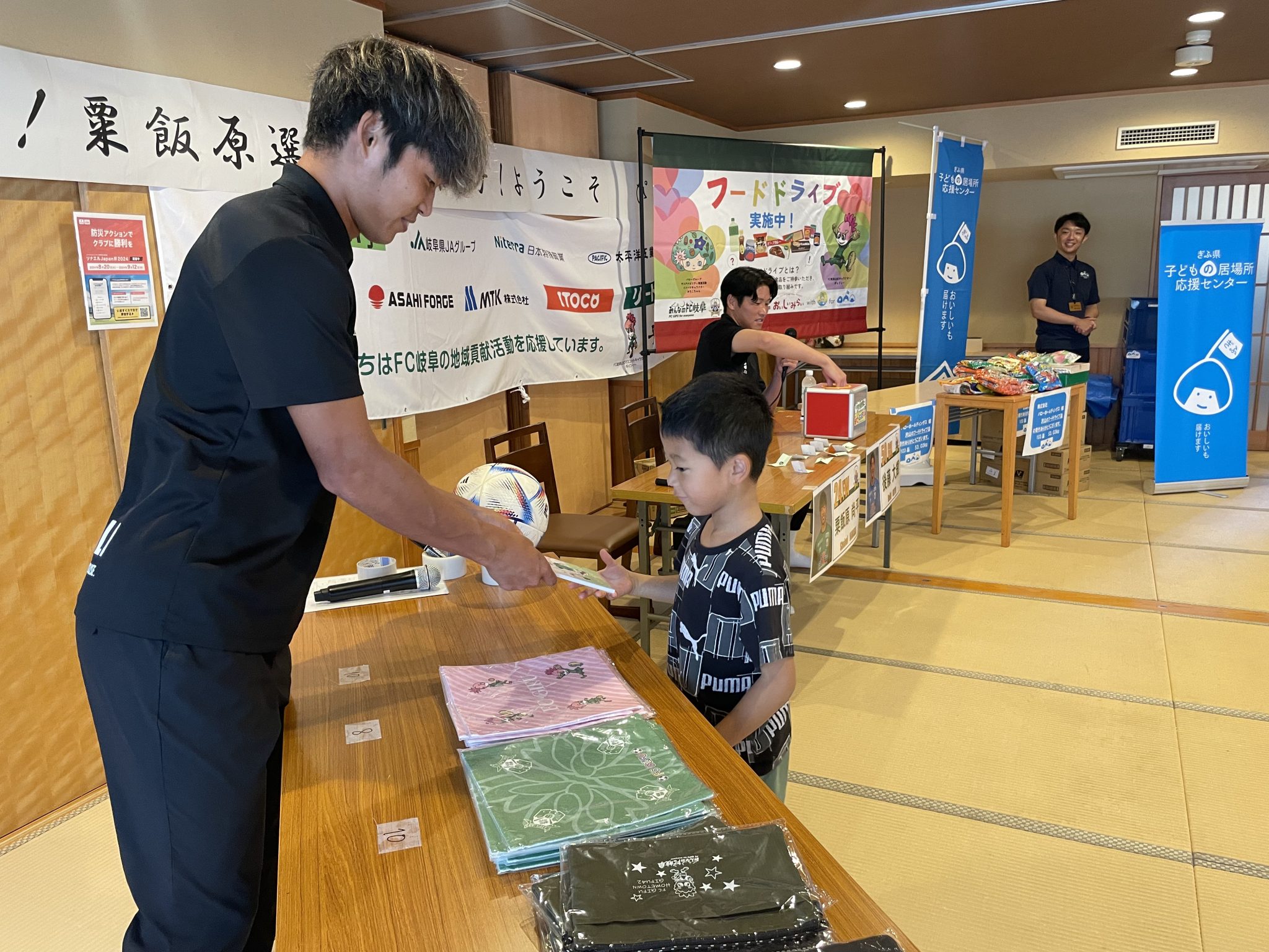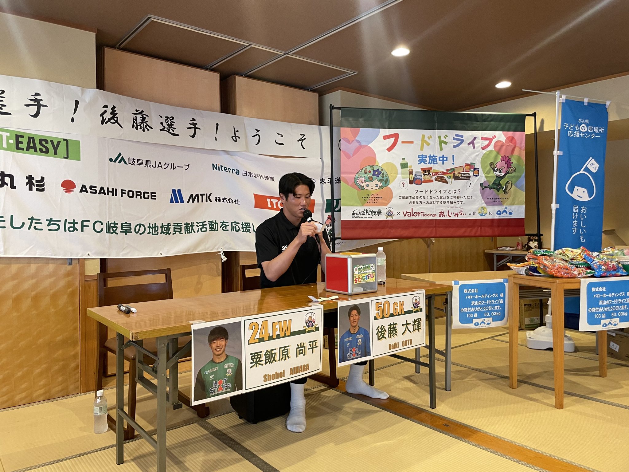8月20日(火)各務原市ホームタウン応援大使を務める粟飯原尚平選手と後藤大輝選手が各務原市にある子どもの居場所「ぴんぽん食堂」都わすれへ訪問し、フードドライブ食品をお届けしました。