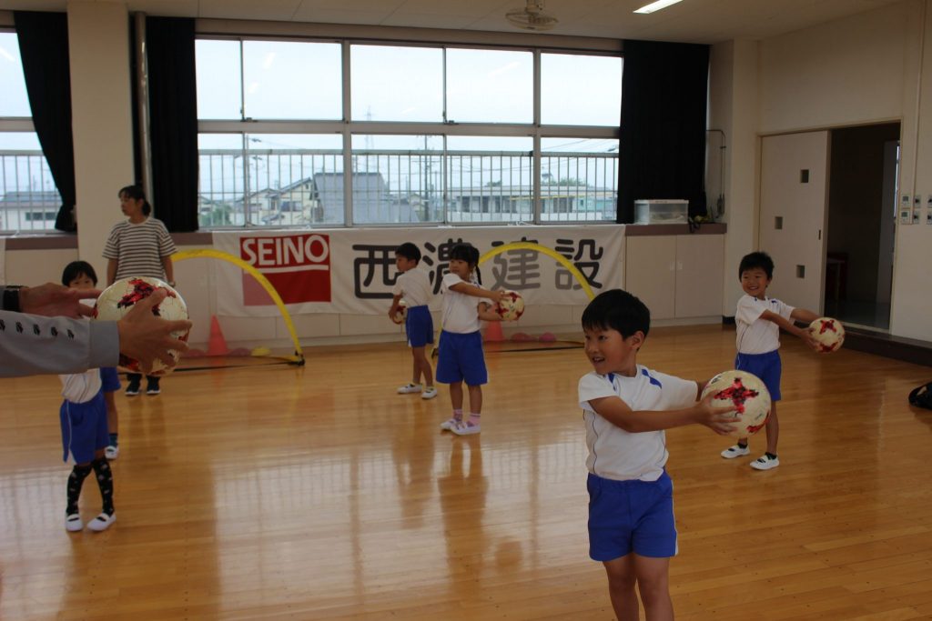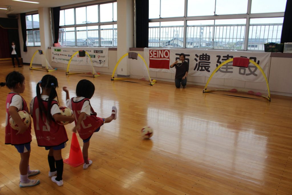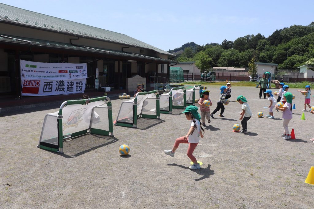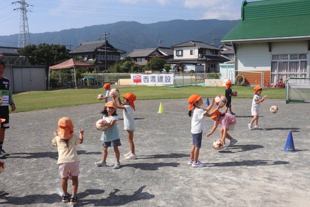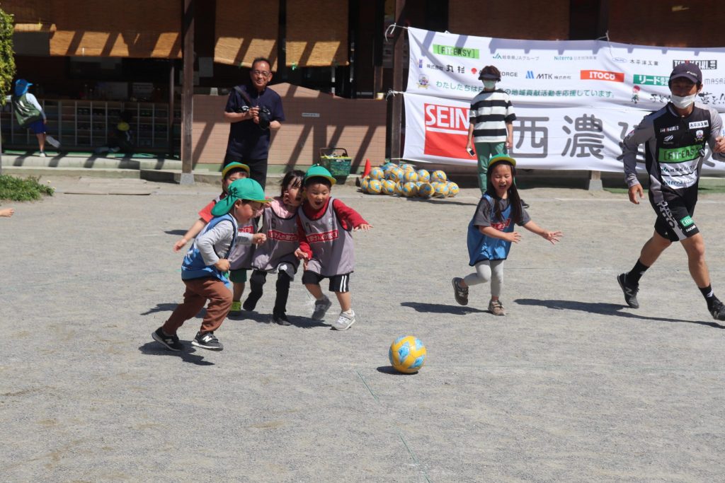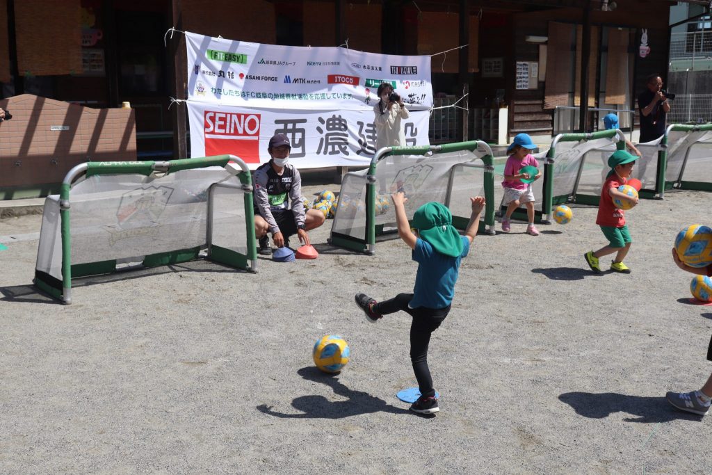 この活動では、西濃地区の幼稚園・保育園などを訪問し、サッカーの技術だけでなく、体を動かす楽しさを伝えていく教室です。