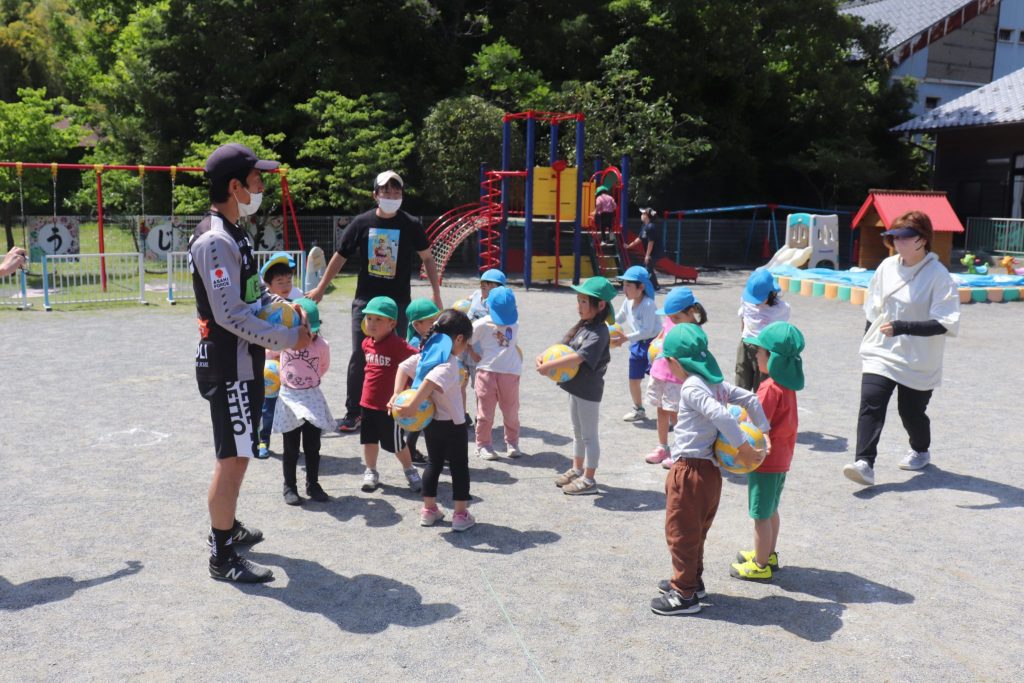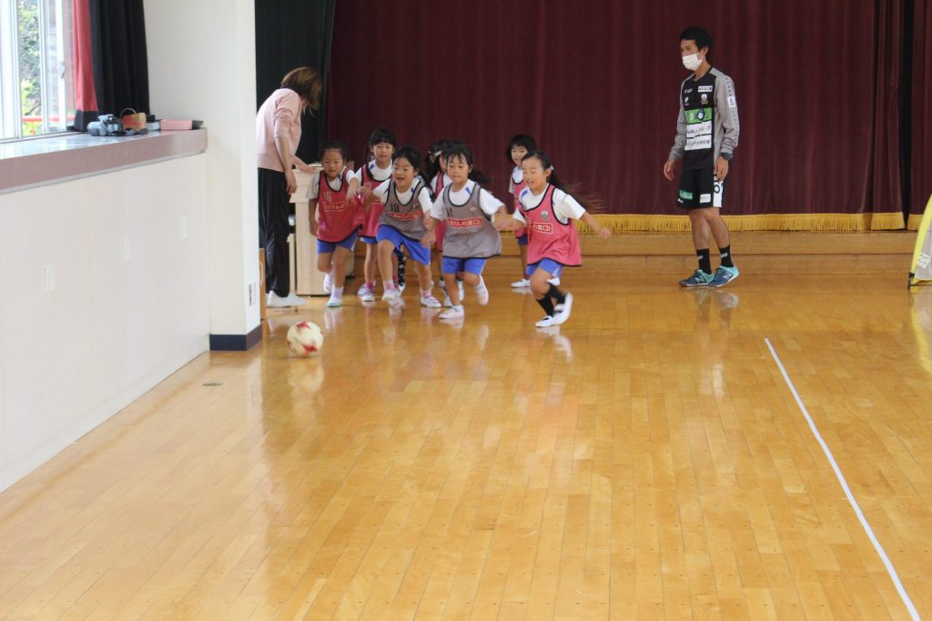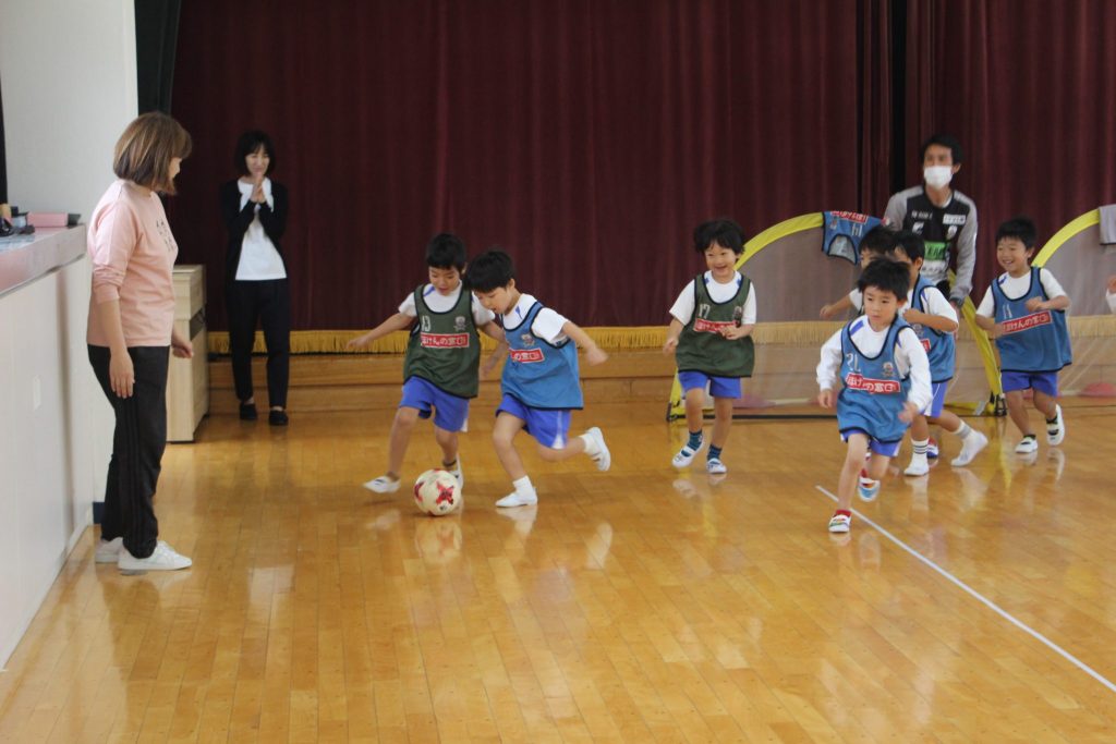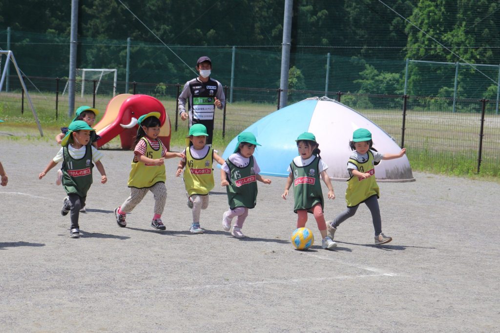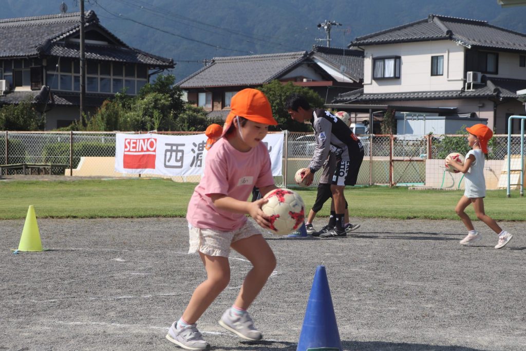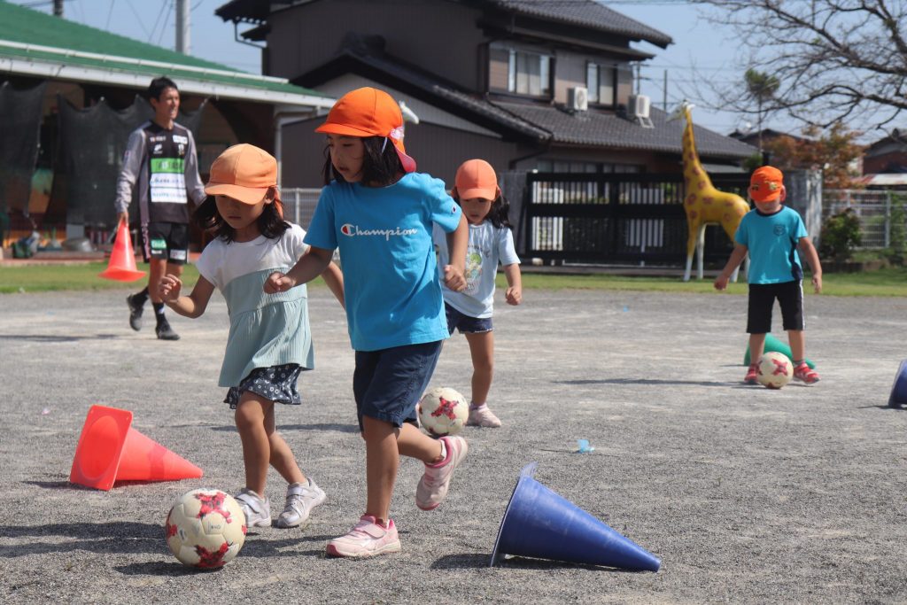 この活動では、西濃地区の幼稚園・保育園などを訪問し、サッカーの技術だけでなく、体を動かす楽しさを伝えていく教室です。