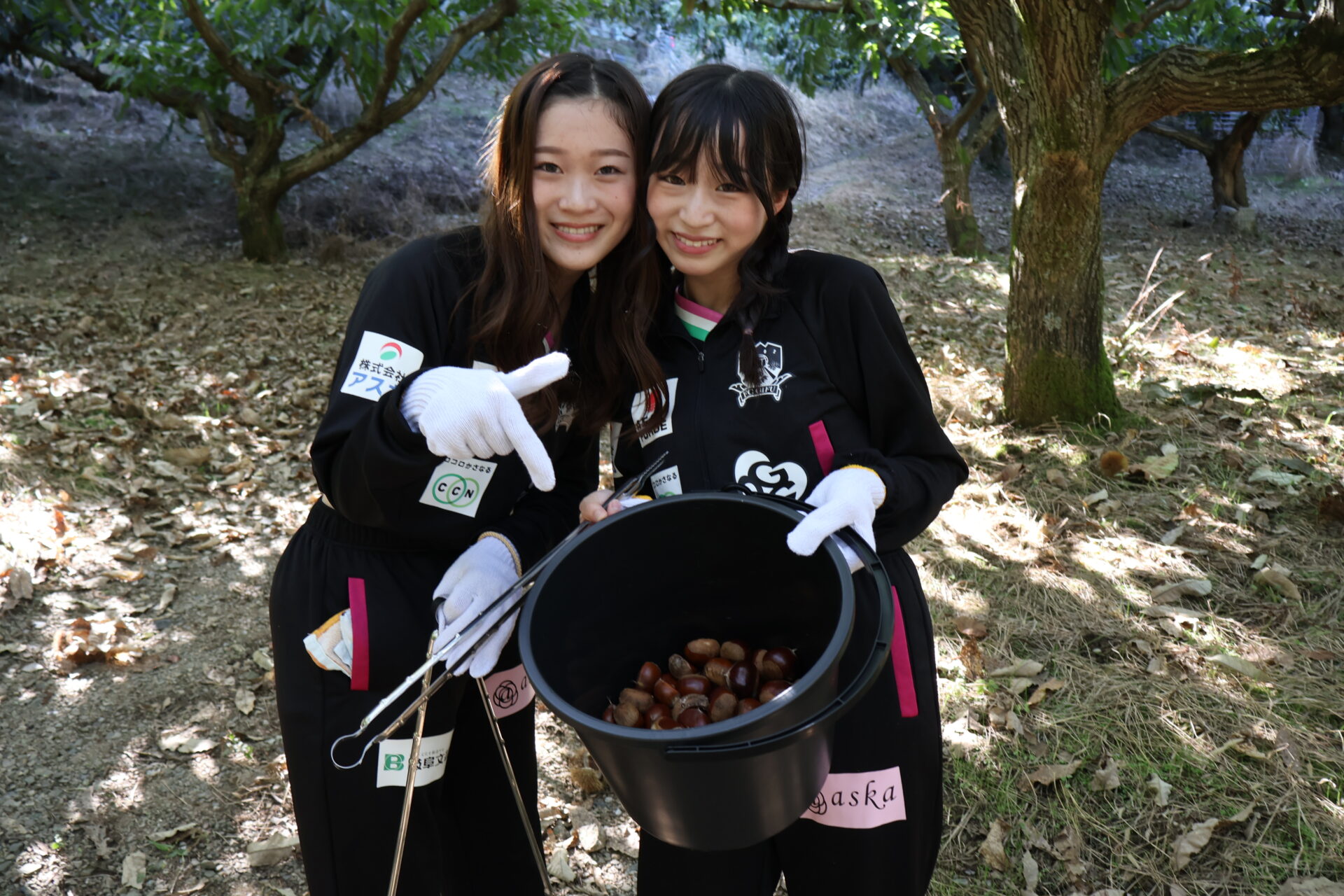 GGGのMOMO、HONOの2人も栗がたくさん採れて素晴らしい笑顔!!