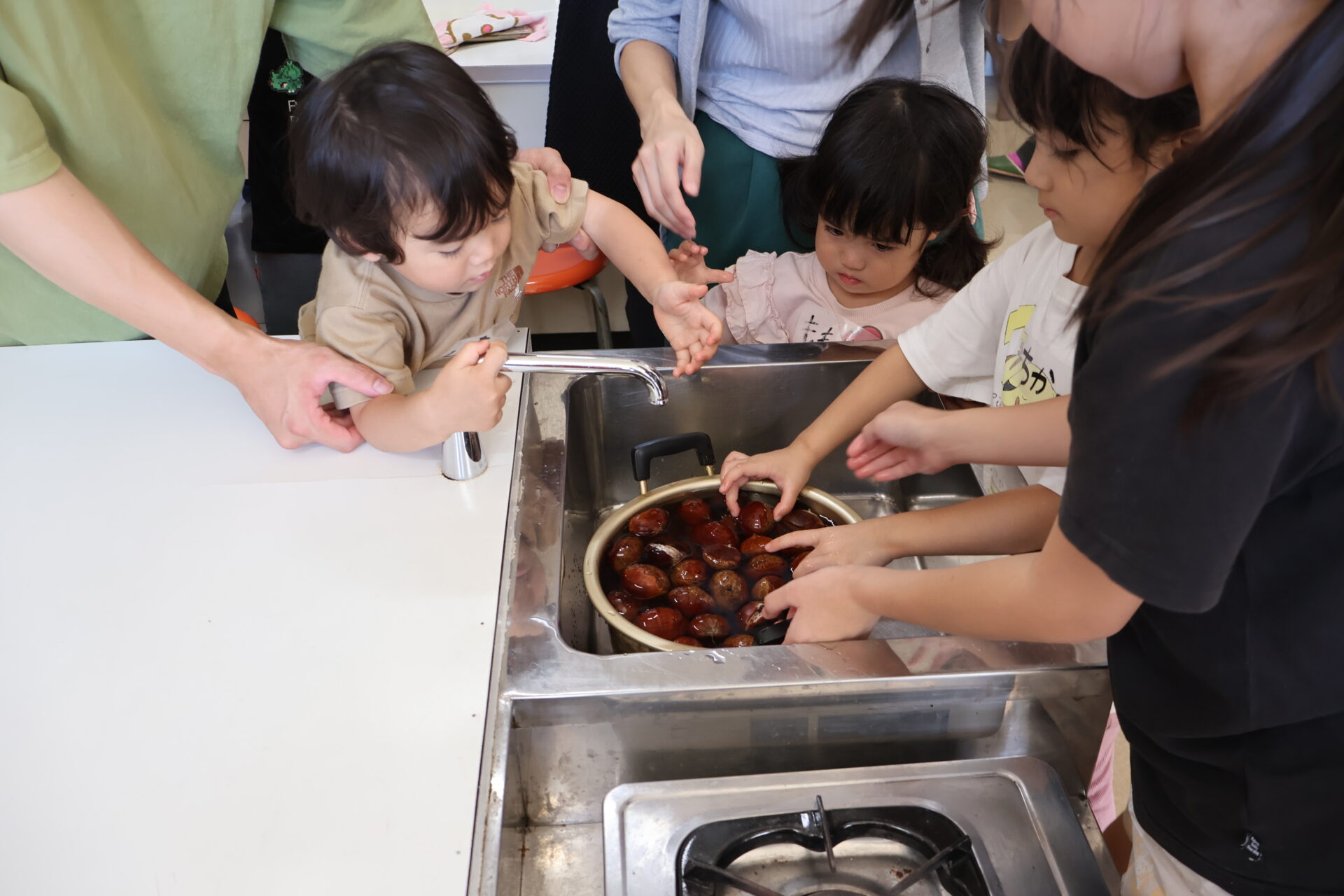 9月27日(土)に川崎重工業株式会社 航空宇宙システムカンパニーさまと連携し、子どもたちを対象とした体験型プログラム「廃棄されてしまう『栗』を使って栗あんを食べよう!!」を実施いたしました。