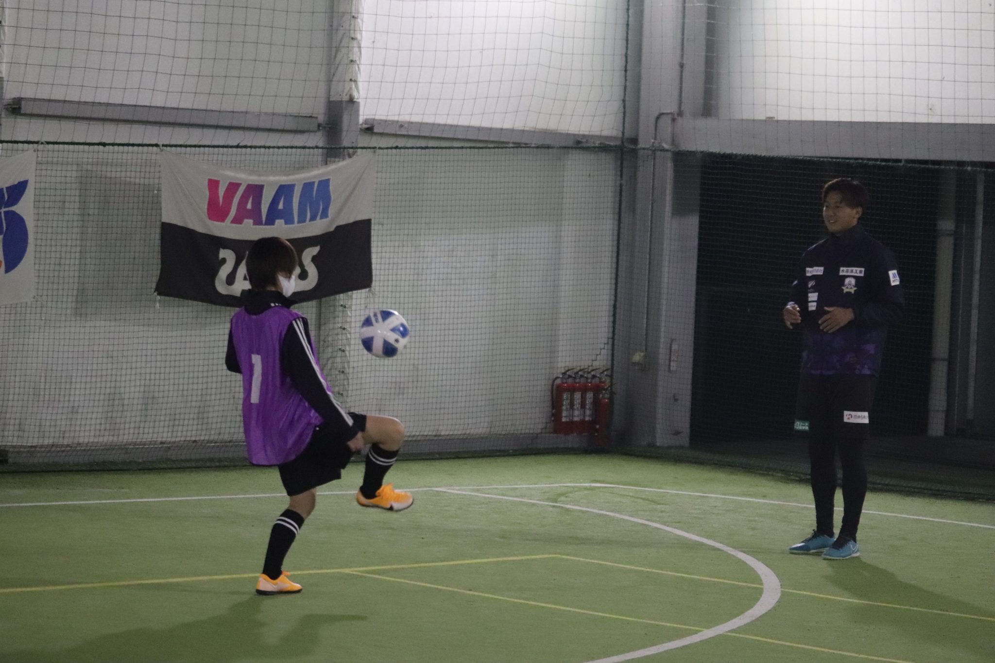 投げてもらったボールのコントロールやキックのトレーニングも行いました。選手から教えていただいたポイントを意識して行うことで、どんどん上手になっていきました。