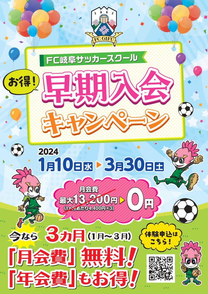 FC岐阜サッカースクールでは「早期入会キャンペーン」を実施します。