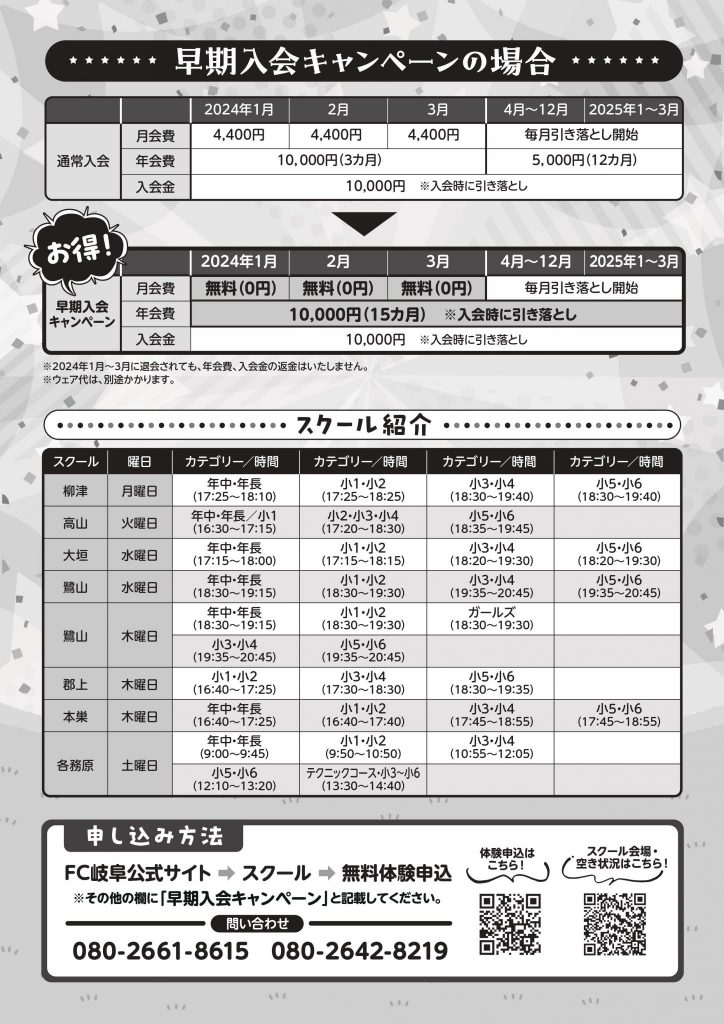 FC岐阜サッカースクール「早期入会キャンペーン」のお知らせ