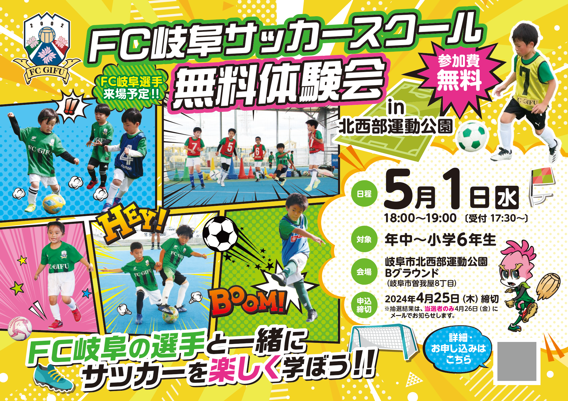 【募集終了】5/1(水)「FC岐阜サッカースクール無料体験会(選手参加サッカー教室)」参加者募集