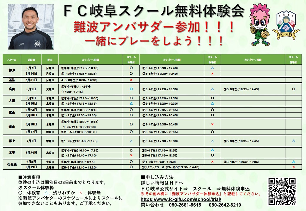 年中~小学6年生のサッカー好きな子どもたち、ぜひこの機会に「FC岐阜サッカースクール無料体験会」に参加して、難波アンバサダーと一緒にサッカーを楽しみましょう!