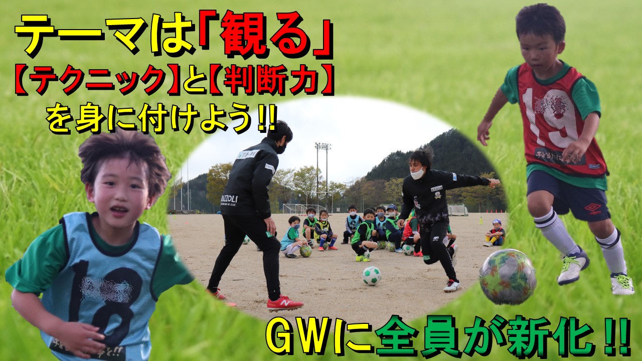 今回は「観る」をテーマに【テクニック】と【判断力】を身につけて、サッカーが好きな仲間と楽しみながら全員で新化しよう!