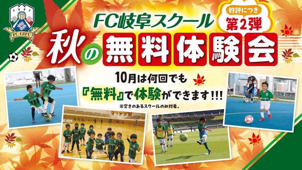 好評につき第2弾となる10月開催「FC岐阜サッカースクール 秋の無料体験会」を実施いたします。