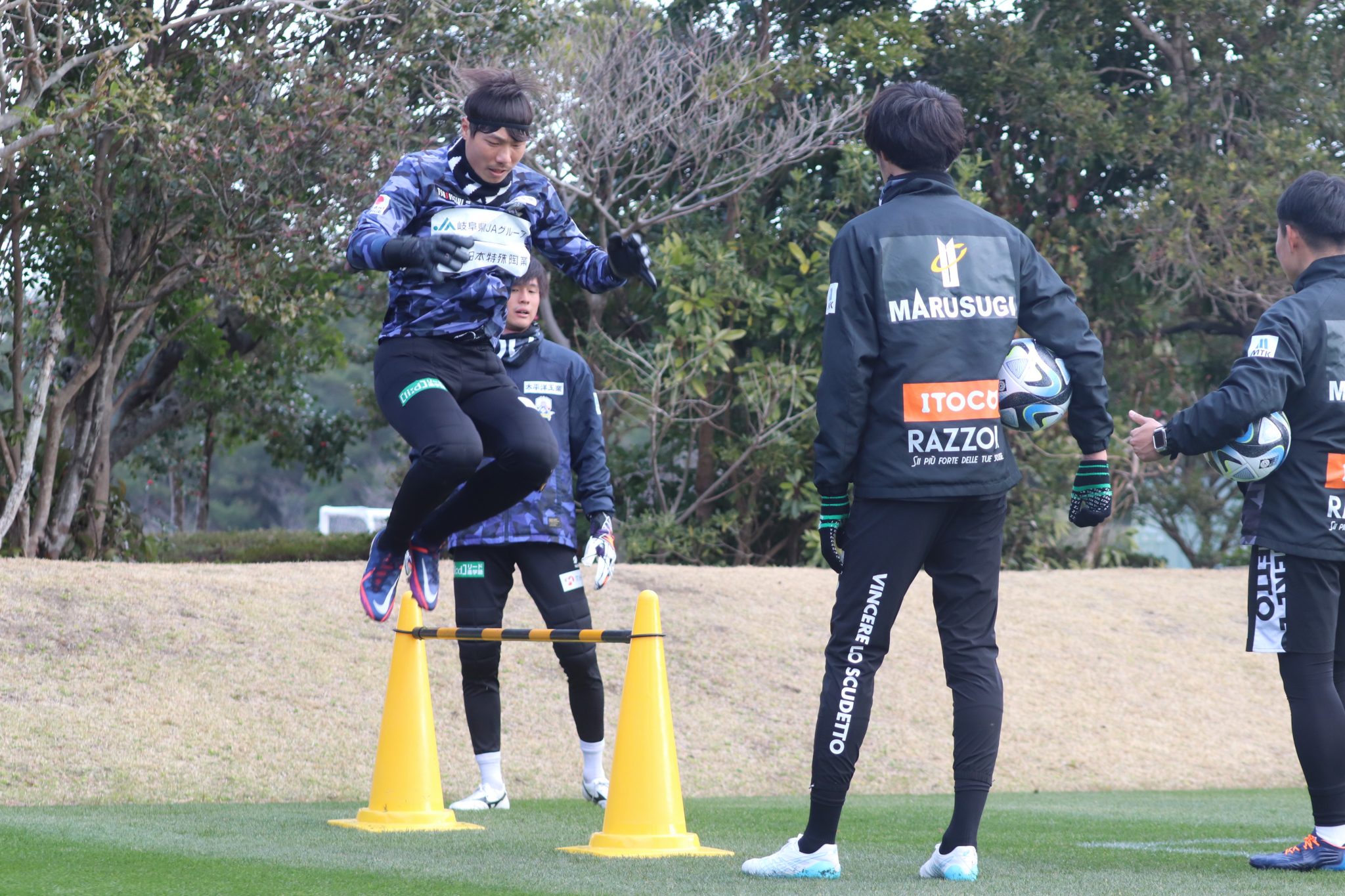 お互いに声を掛け合いながら、きついメニューに取り組んでいたキーパーチーム。