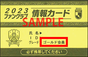 ②「観戦体験チケット(会員特典チケット等)」と「情報カード(ゴールド会員)」の両方をご提示。