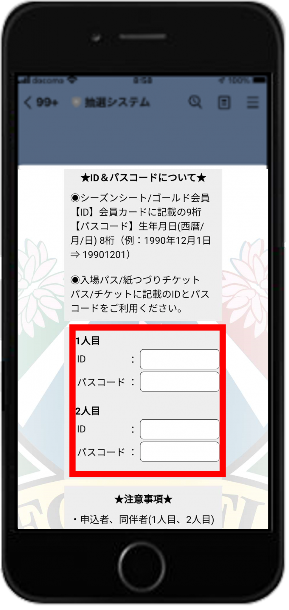 試合当日、抽選結果の画面をスタッフにご提示ください。