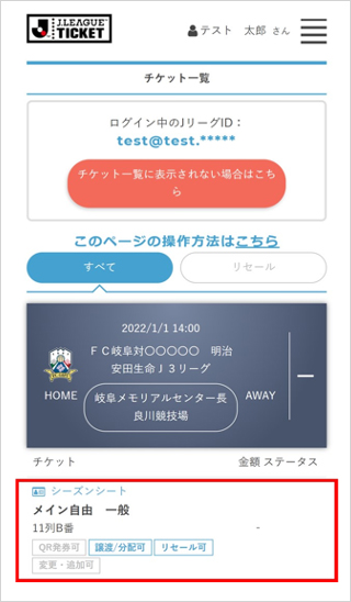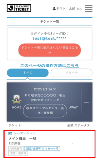 - 代表者がシーズンシートをご購入されている場合、同伴者の分をまとめてリセールすることはできません。リセールの際は、リセールされる「ご本人様」が「JリーグID」を取得のうえお手続きをお願いいたします。