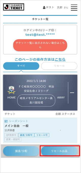 行けなくなった試合のチケットをお客様ご自身が金額を設定して再販できる公式サービスです。