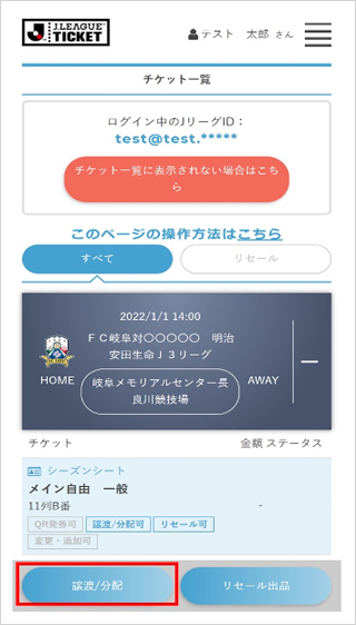 チケット情報が表示されますので、譲渡したい試合をクリック。